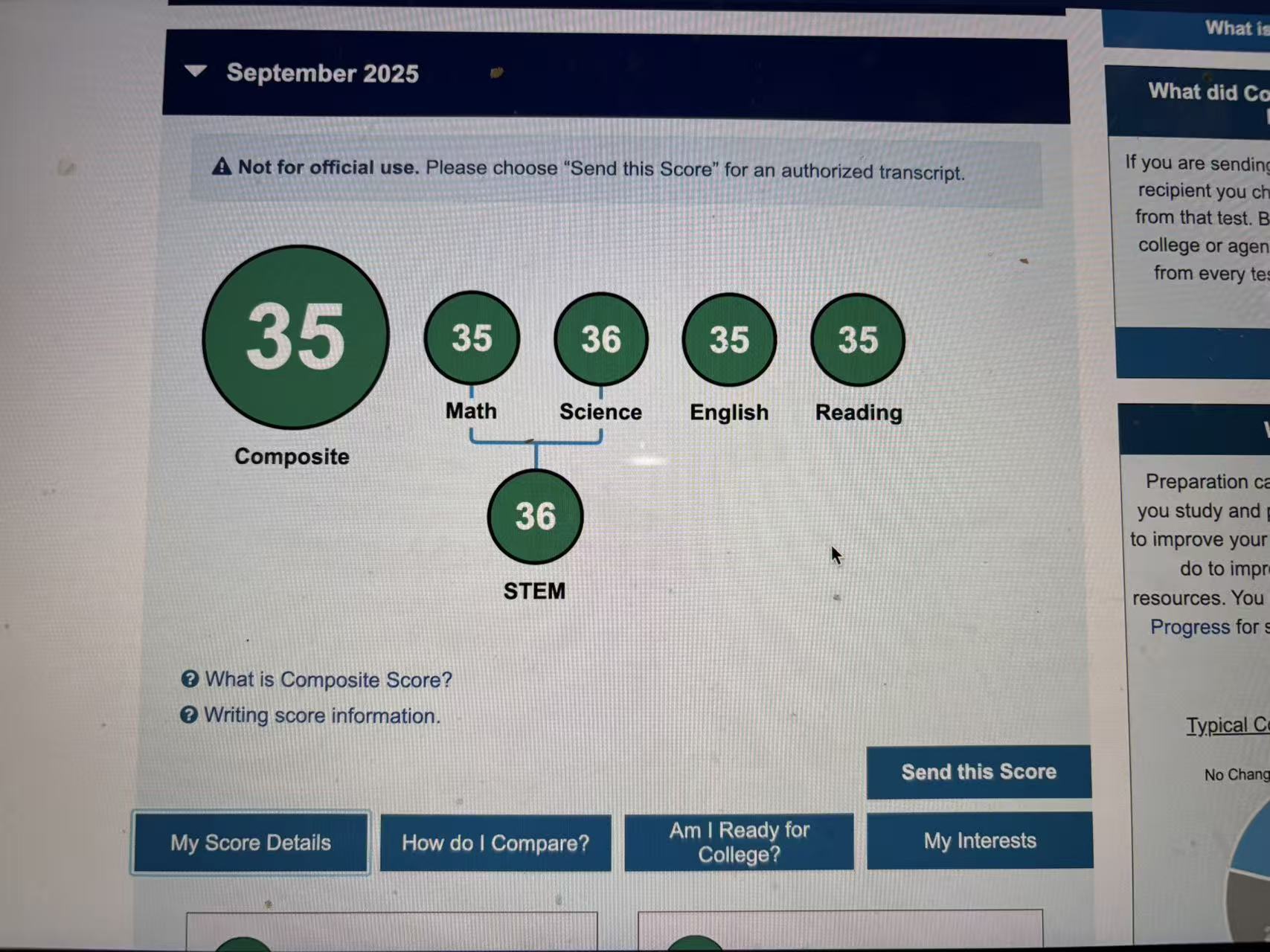 祝贺 Gavin Z. 同学在 20257 月 12 号的 ACT 考试中取得了 Composite Score 35 分的优异成绩。