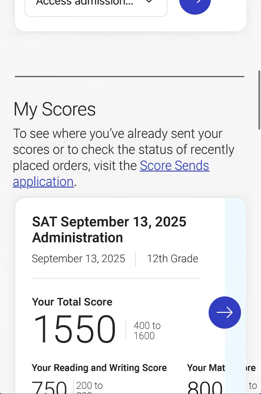 祝贺 Abby B. 同学在 20253 月 27 号的 SAT school day 考试中取得了 1550 分的优异成绩。